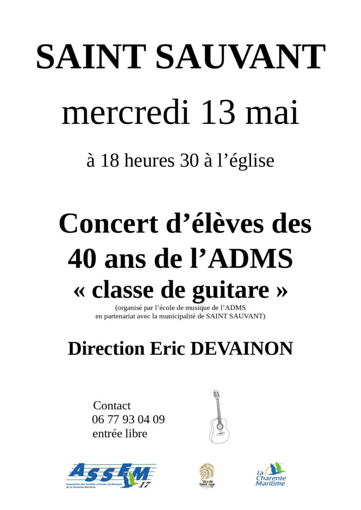 Concert d’élèves des 40 ans de l’ADMS « classes de guitare » Facebook Twitter LinkedIn Email Imprimer